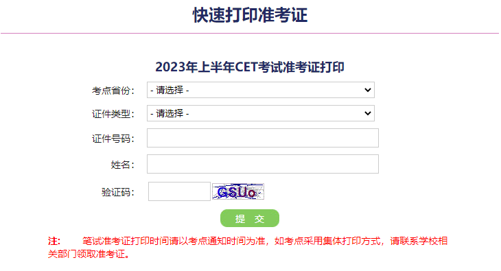 1.进入全国大学英语四、六级考试报名网站,点击“快速打印准考证号”,进入打印准考证的页面;