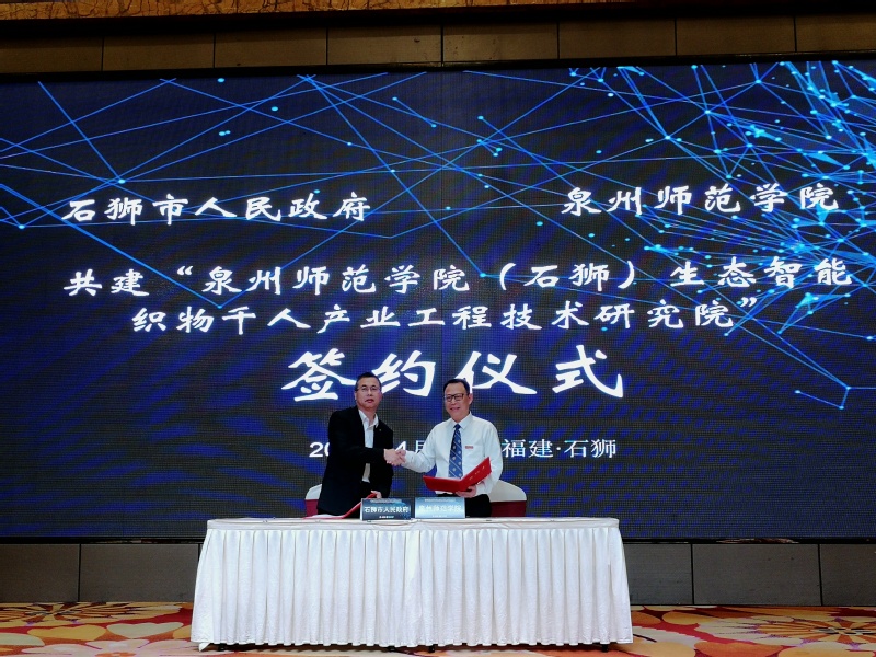 校长屈广清代表学校与石狮市人民政府签订共建“泉州师范学院(石狮)生态智能织物千人产业工程技术研究院”协议。校党委副书记高云程出席海丝品博会开馆仪式,并参加了青创城2018电商生态峰会暨青创城2018战略发布会。