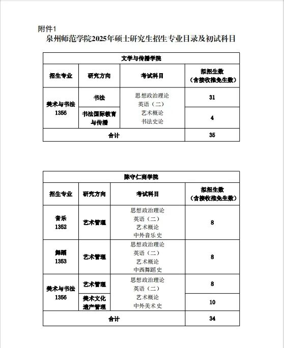 泉州师范学院2025年硕士研究生招生专业目录及初试科目