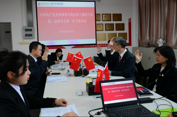 12月28日下午,中共泉州师范学院纺织与服装学院二届一次全会在王爱约楼704党建工作室召开。黄国波主持会议。