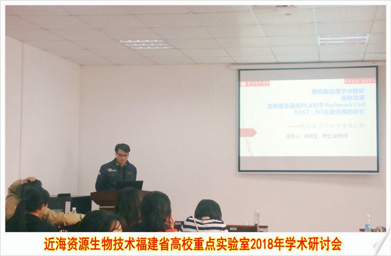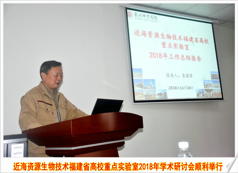 24日,“近海资源生物技术福建省高校重点实验室”学术研讨会正式召开。泉州师范学院科研处处长戴聪杰教授代表学校表达了对学院发展和重点实验室建设的支持。泉州市海洋渔业局黄前程副局长出席了本次会议,并为学院重点实验室建设和发展提供了各方面支持,同时大力促进了地方校企合作。袁建军院长详细介绍了“近海资源生物技术福建省高校重点实验室”近一年的工作总结。