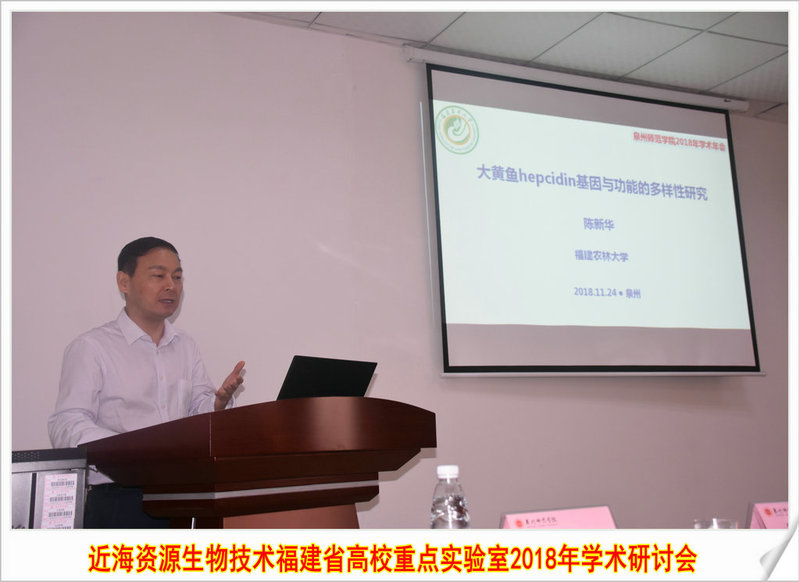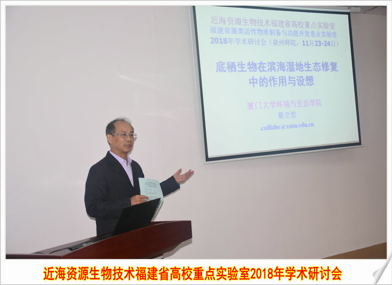 2018年11月23-24日,“近海资源生物技术福建省高校重点实验室”学术委员会及学术研讨会在泉州师范学院海洋与食品学院召开。23日晚,召开了重点实验室学术委员会。重点实验室主任蔡立哲教授主持了会议,袁建军院长介绍了重点实验室近一年来的工作总结。各位专家学术委员也为重点实验室建设及学院发展提出了宝贵建议。