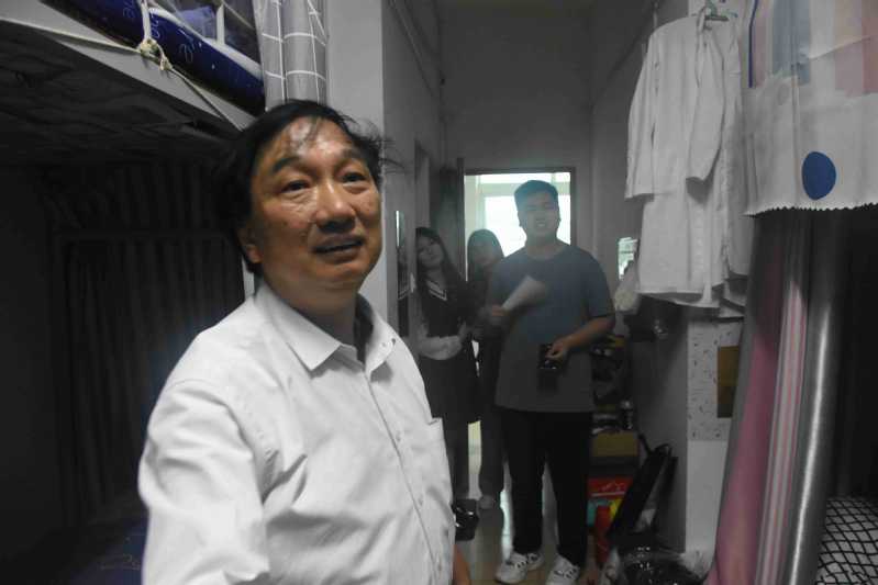 蔡英卿一行逐间访查学生宿舍,对每间学生宿舍的安全隐患、设备质量、环境状况、同宿关系等进行了深入的摸查和记录。蔡英卿一行在走访的过程中,与学生亲切谈话,认真听取学生对学院各项工作的意见和建议,解决学生在校园生活中遇到的困难问题。蔡英卿强调,大学生在校园中学习是第一要务,宿舍生活的安全和谐是同学们学习的重要保障,辅导员、自律会、学生会的学生代表要充分发挥作用,关注同学们的宿舍生活,时常走访谈话,积极解决同学们的问题,“马上就办、真抓实干”,切实为同学们的学习生活保驾护航。