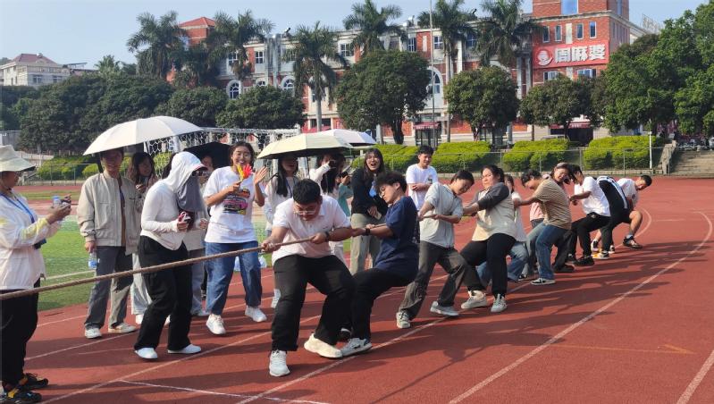 运动会共有两个环节:“两人三足”和团队拔河。两人三足不仅考验了选手们的身体素质和协调能力,更是一次默契与协作能力的体现,同学们携手并肩,共同迈着坚定的步伐勇往直前。最终女子组前三甲为22生科1班、23生科2班、23食品1班,男子组第一名为23食品2班。