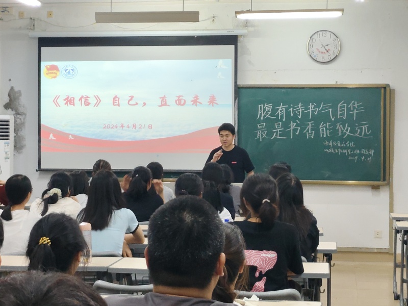 学院团委委员乐生煊为23生科2班团支部开展以“腹有诗书气自华,最是书香能致远”的主题团课。课上,乐生煊以《相信》一书为载体,向同学们讲述了原京东副总裁、渐冻症患者蔡磊的励志感人故事,并逐句逐字朗读原文,让同学们进一步学习蔡磊无惧困难、勇往直前、顽强抗争的精神品质,进一步激发了青年团员的阅读兴趣,引导青年通过阅读汲取精神伟力。