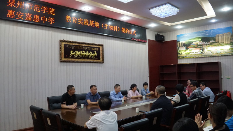 4月30日,我院副院长郑宗平、党委副书记刘礼元、教学科研办副主任林宏以及生物科学系主任陈细香一行前往惠安嘉惠中学举行教育实践基地签约仪式。嘉惠中学党支部书记、校长庄进平,全体校级领导,部分行政及生物教研组全体教师参加。仪式由嘉惠中学教务处主任王大志主持。
