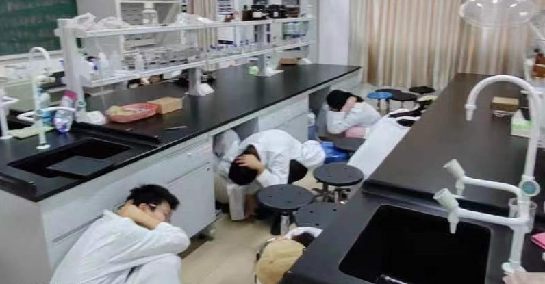 为了深化我院学生的防震减灾意识,进一步提高我院学生的紧急避震能力、应急反应能力和自救互救能力。5月15日,我院于宝龙实验楼开展防震疏散演练活动。随着急促的哨声响起,同学们迅速蹲下、双手保护头部,寻找最近的掩体进行应急避震;第二声哨声响起,同学们迅速有序地疏散到安全位置,排成方队清点人数,整个过程井然有序,展示了良好的应急疏散能力。
