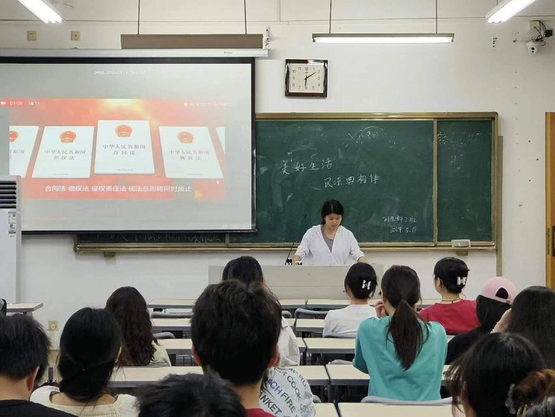 为深入学习贯彻习近平法治思想,发扬民法典学习宣传的重要指示精神,增强学生对《中华人民共和国民法典》的理解和认识。5月19日晚,我院各班于理工楼五楼开展“美好生活·民法典相伴”主题班会。班会上,我院各班主干带领同学们观看民法典公益宣传片,结合案例讲解民法典的相关条例,引导同学们关注“中国普法”公众号学习更多法律知识,有效提升了学生自觉遵法学法守法用法意识,实现“法润民心,治与‘典’行”。