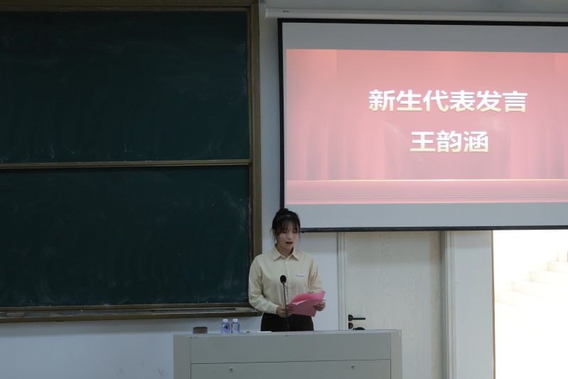 最后,新生代表王韵涵同学上台发言,她以满腔的热情与坚定的信念,表达了对未来大学生活的无限憧憬与期待。她承诺将珍惜大学时光,努力学习专业知识,积极参与各类活动,不断提升自己的综合素质与能力,为学院争光,为人生添彩。