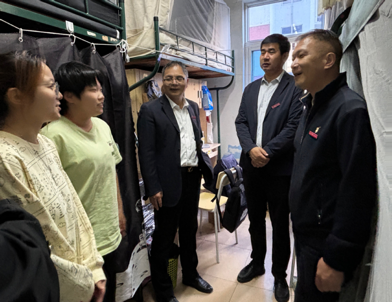 走访过程中,蔡志荣亲切地和同学们聊起家常,“家乡是哪里的?”“饮食习惯吗?”“入校以来有没有遇到什么困难?”......围绕学生学习生活的方方面面,送上学院的关心与温暖。叮嘱同学们遇到困难或困惑时,要及时向辅导员或班主任反应,学院将切实为同学们解决急难愁盼问题;梁鹏勉励同学们要珍惜大学美好时光,树立正确的人生观、世界观、价值观,努力学好专业知识,增强社会实践能力,提高综合素质,认真规划未来之路,脚踏实地、努力奋斗;刘礼元提醒同学们要提高安全意识,谨防线上线下任何形式的电信诈骗活动,时刻注意寝室安全和用电安全,注意个人卫生和宿舍卫生,谨防防火防盗,外出关好门窗,共同维护一个安全、健康、和谐的住宿环境。