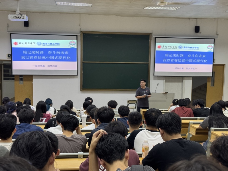 近日,海洋与食品学院全体辅导员深入各班级,开展“铭记来时路,奋斗向未来——我以青春绘就中国式现代化”主题班会。辅导员围绕大阅兵的历史意义展开深入讲解,阐释伟大抗战精神的内涵,并结合90后、00后在阅兵仪式、志愿服务、科研攻关等场景中的鲜活事迹,生动展现青年一代在国家重大活动中的责任与担当。最后,辅导员引导学生将“奋斗”精神细化为具体的学习与实践计划。