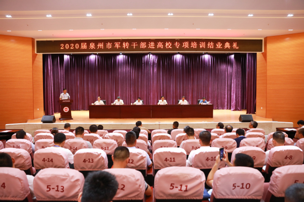 7月7日上午,我校在特教大楼第一学术报告厅举行泉州市军转干部进高校专项培训结业典礼。泉州市退役军人事务局局长陈金忠、副局长王志明及相关人员、我校军转干部专项培训领导组成员,相关二级学院领导参加了典礼。校党委书记朱世泽、校长屈广清、副校长黄江昆出席典礼,典礼由继续教育处处长、继续教育学院院长陈秋燕主持。