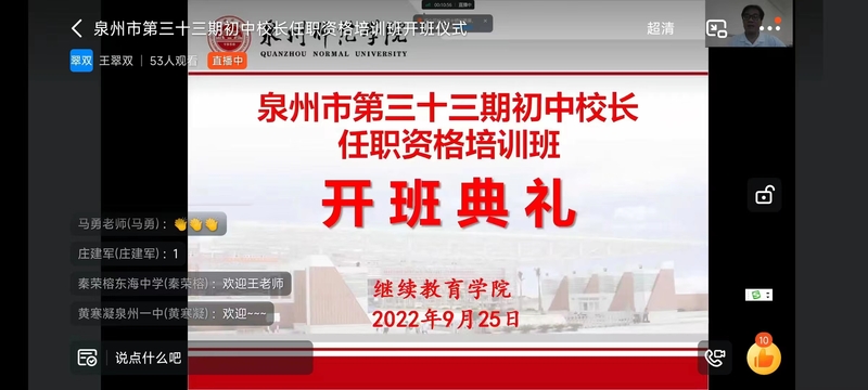 近日,由泉州市教育局主办、泉州师范学院继续教育学院承办的“泉州市第三十三期初中校长任职资格培训班”顺利开班。
