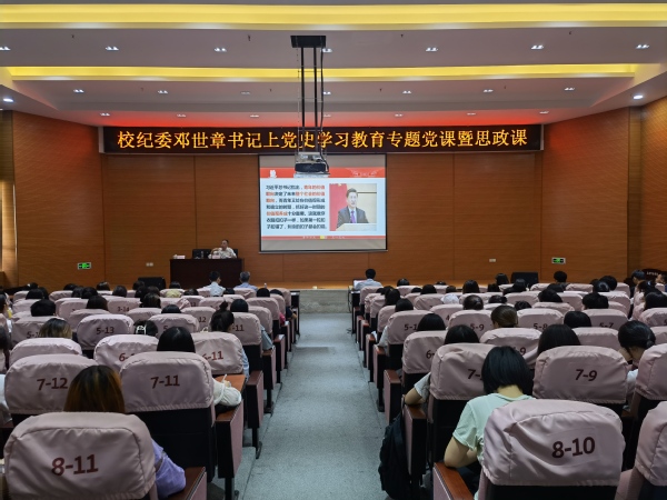 6月10日下午,校党委常委、纪委书记、监察专员邓世章在特教大楼第二学术报告厅为学生干部上党史学习教育专题党课暨思政课。校纪委(监察专员办)、校党委宣传部、校团委、研究生处、研究生院(筹)相关负责人以及团委会、学生会、研究生会学生干部近200人参加聆听。