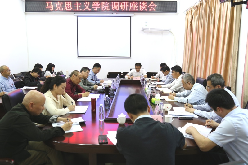 为深入开展学习贯彻习近平新时代中国特色社会主义思想主题教育,深入实施“深学争优、敢为争先、实干争效”行动,4月21日下午,校党委书记柯瑞清在校党委副书记陈晓风的陪同下,带领党政办、宣传部、教师工作部、发规处、教务处等部门负责人到马克思主义学院调研工作。马克思主义学院党政班子成员、党支部书记、教研部主任及骨干教师代表参加调研座谈会。