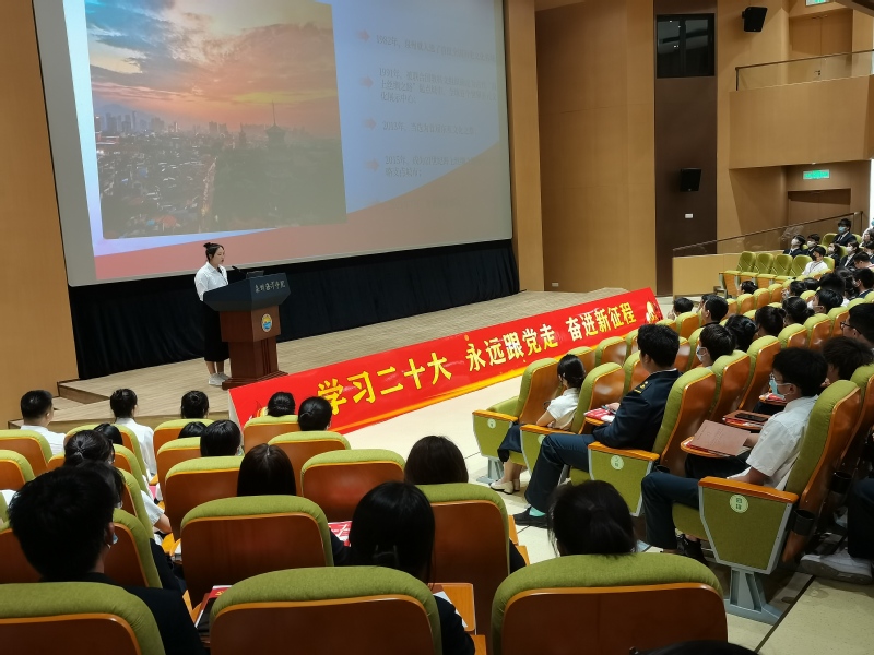 研学活动结束后,宣讲团成员先后到泉州海洋职业学院、泉州第七中学金山校区、福建师范大学泉州附属中学开展了“海上丝绸之路”主题线路巡回宣讲,生动地将本次研学活动的所见、所闻、所思、所悟成果,第一时间运用到宣讲活动中,把鲜活的社会大课堂融入思政小课堂,有力推动学习走深走实,宣讲入脑入心。