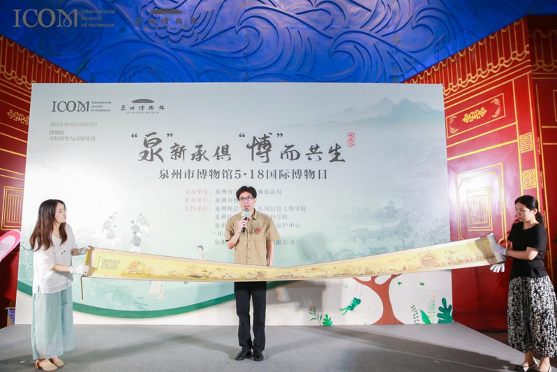 启动仪式上,泉州师范学院美术与设计学院蔡永辉院长个人历时四年创作的美术长卷《宋元中国·海丝泉州传奇》,作为《刺桐梦华图》姐妹篇,今日在“5·18”国际博物馆活动日亮相,并捐赠《宋元中国、海丝泉州传奇》纸质长卷和数字动态视频,经后将向广大市民永久展播!此举助推学术研究、陈列展览及宣传教育起着积极的作用。