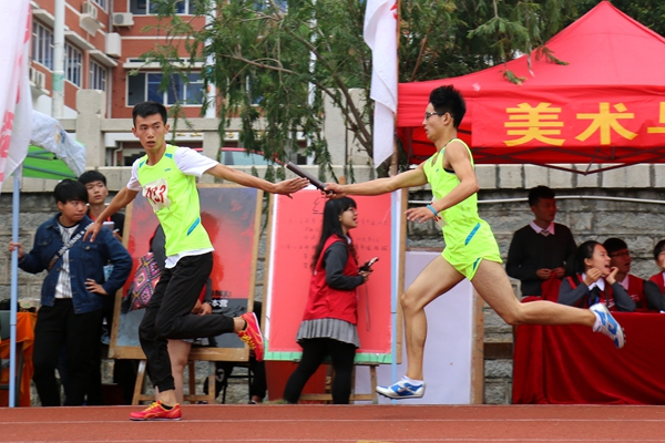 运动员做完赛前热身后,集中精力,专注于比赛。枪声一响,第一棒运动员陈洁迅速起跑,似离弦之箭冲向前方,他克服弯道阻力,稳居第一,与第二棒迅速交接。第二棒运动员孙宇恒也不甘落后,奋力奔跑,拉开自己与对手的距离,暂时处于领先地位。第三棒运动员杜清圆在第三个弯道处稍显劣势,被其他运动员赶超。赛场上此起彼伏的呐喊声为我院运动员增添了动力。在最后的冲刺阶段,程天龙咬牙坚持,奋勇往前冲,凭借超凡实力反超对手。