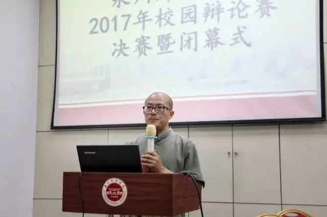 辩论结束后,在评委讨论比赛结果时,主持人提出关于“古泉州申遗的利弊”请教正反双方,双方辩手各自提出自己的观点。评委吴素明老师对此次决赛做了点评,肯定双方的辩论水平,同时也指出不足与纰漏。最后,主持人宣布冠军为软件学院,亚军为政发学院。各位评委和老师分别为“优秀辩手”、组织奖和获前三名团队颁奖。至此,泉州师院2017年校园辩论赛圆满落下帷幕。