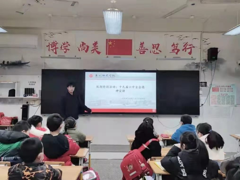 为深入学习贯彻习近平新时代中国特色社会主义思想,学习宣传贯彻党的十九届六中全会精神,认真落实习近平总书记关于青年工作的重要思想,坚持“受教育、长才干、做贡献”的宗旨,为助力疫情防控,推进家乡建设发展,我校学子踊跃参与“新时代新征程,新青年兴家乡”返家乡寒假社会实践,其中,实践类型涵盖了疫情防控志愿活动、小学课堂教学与宣讲活动、社区清扫与美化公益活动、文化宣传活动以及网络云宣传活动等。在此次返家乡寒假社会实践活动中,我校学子活跃在各个社区、街道、平台,以多种形式参与实践志愿服务活动,既充实了其寒假生活,提升了自己的社会技能,又展示了坚持“善学如泉,正心至大”的新时代新青年的泉师学子形象,充分为家乡的社会事业作出贡献,服务人民。