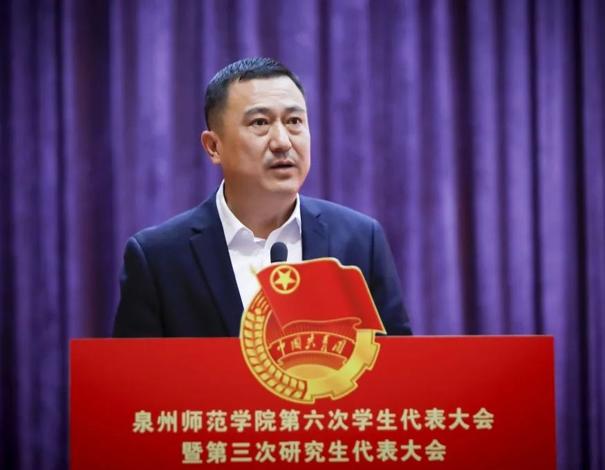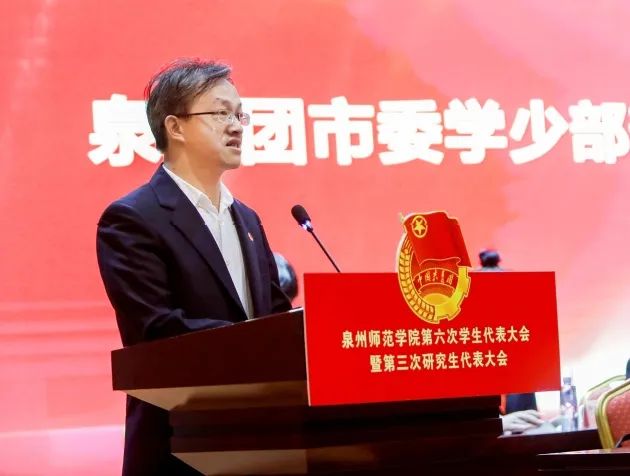 团市委学少部部长陈为藩代表市学联对大会的召开表示真挚的祝贺,肯定了我校学生会、研究生会在青年学生思想塑造、成长成才、身心健康、社会融入、权益维护等方面展现出担当和奉献精神。并提出三点希望:一是突出政治性,强化思想教育引领,以习近平新时代中国特色社会主义思想为指导,引领学生学习新思想,奋进新征程;二是提升服务,助力青年学生成长成才,真正做到“请党放心,强国有我”;三是强基固本,推动团学组织高质量发展,持续深化改革,锻造有高度、有温度、有力度的学生会和研究生会组织。