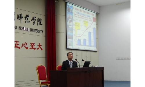 3月28日下午,台湾体育运动史学会会长、台湾树德科技大学休运管系(所)专任教授、博士生导师王建台教授来校作“近年台湾体育休闲产业的发展与愿景”的精彩讲座。