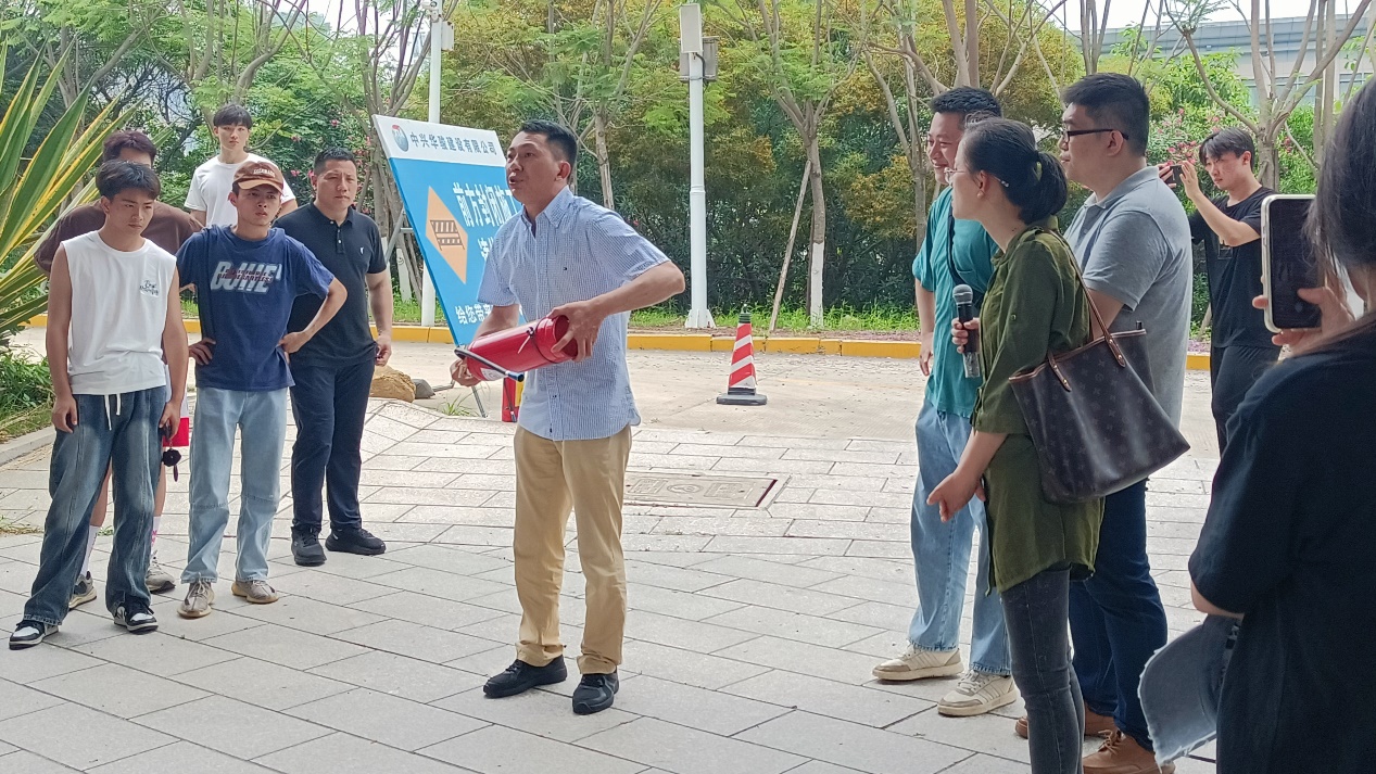 在演习现场,警铃骤响,全体参演师生员工按照疏散预案,紧急撤离着火区域,安全、快速、有序地疏散到指定安全区域。在疏散演练过程中学生们听从引导员的指挥,积极配合演练,增强了火灾事故的应急处置能力,提高了自救互救能力。随后,校保卫处洪国祥老师详细讲解了从火灾的基本规律,火灾预防、处置初期火灾方法,以及各类消防装备的用途、性能和使用方法等,引导他们辨认常见的消防安全指示标志和疏散指示标志,并现场演示灭火器的使用方法,最后让所有参演人员亲自体验学习使用灭火器。