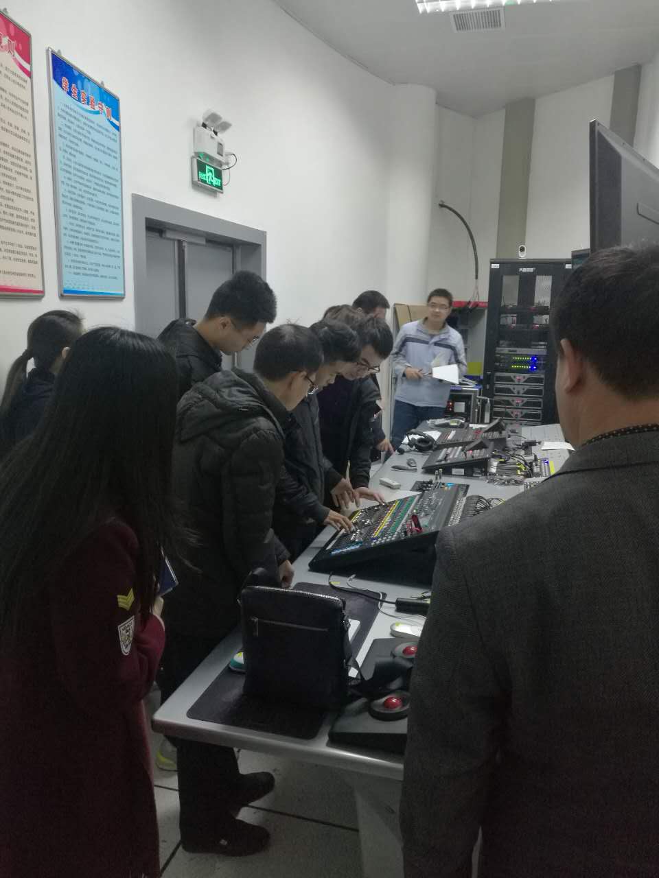 泉州医学高等专科学校一行实地参观我院已经建成使用的多功能演播厅,语言与传媒实验室主任戴朝阳详细介绍了演播厅功能,通过进行简单的操作演示,讲解各种设备配置的用途、操作和优劣,最后还引导来宾参观了在建的语言与传媒实验室。