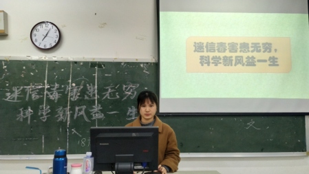 为弘扬社会主义核心价值观,进一步加强同学们对科学新风尚的认识,我院团委积极响应校团委号召,于3月10日晚在俊秀东楼开展主题为“迷信毒害患无穷,科学新风益一生”的主题团日活动。