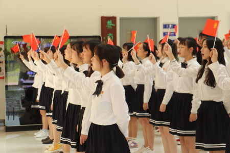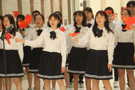 活动正式开始前,30名团员代表听从工作人员安排,身着统一服装并佩戴好校徽、团徽,手握小国旗、小团旗。活动开始后,同学们按队形依次排开,有节奏地挥舞着手中的旗子,饱含激情地唱响经典红歌《我爱你中国》。歌曲旋律激昂,歌声婉转悠扬,唱出了属于我院青年学子的青春赞歌。这场青春快闪活动,是我院对建团97周年暨五四运动100周年最真挚的献礼,饱含了我院学子对祖国的美好祝愿。