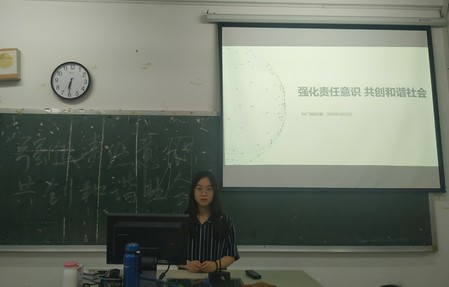 为深入学习贯彻习近平新时代中国特色社会主义思想和党的十九大精神,引导大学生践行社会主义核心价值观,我院团委积极响应校团委号召,于5月9日下午在俊秀东楼开展“强化责任意识,共创和谐社会”主题团日活动。