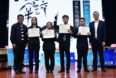 11月28日晚,文学与传播学院2019年新生辩论赛闭幕式暨决赛于俊秀演播厅举行,经过初赛、复赛的激烈角逐,19中文1班与19广电专业2班成功晋级决赛。文传学院党委书记王勇卫教授、党委副书记肖文清老师、中文系谢英教授、国家级普通话水平测试员郭泽清老师、蔡育红副教授、汉教专业主任王曦副教授担任评委,全体辅导员出席。经过双方精彩对决,19中文1班摘得桂冠。