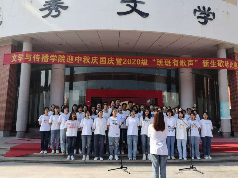 10月1日下午,文传学院2020级“班班有歌声”新生歌咏比赛在俊秀广场隆重举行,院党委副书记、纪委书记肖文清、各专业新生辅导员出席,20级全体新生参赛。