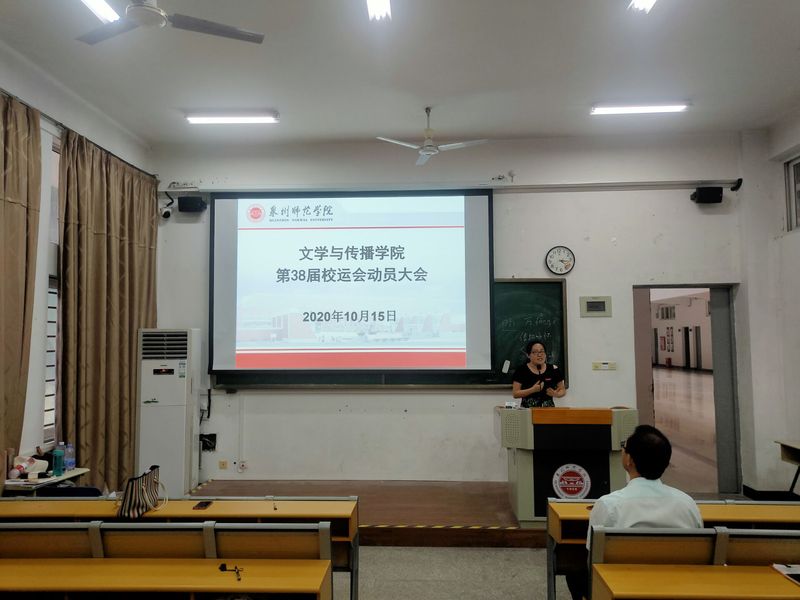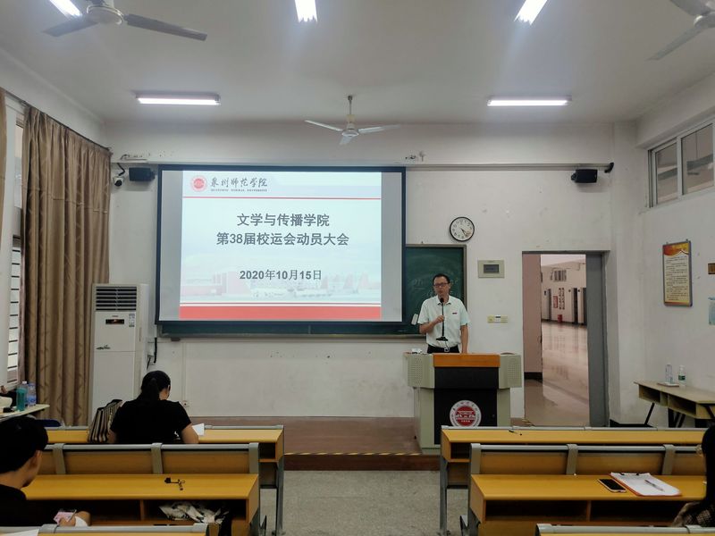 为迎接我校第38届田径运动会,鼓舞我院运动员刻苦训练、争夺佳绩的士气,文传学院于10月15日下午在俊秀东楼109教室组织开展校运会动员大会。本次大会由辅导员白荣耀主持,院党委副书记、纪委书记肖文清,院团委副书记、学工办副主任陈燕红及我院辅导员出席,院体育部学生干部以及全体运动员参加。