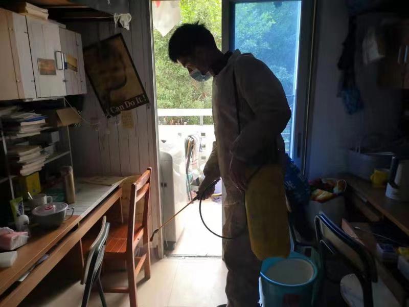 在消杀过程中,学院各专业辅导员陪同专业消杀人员深入每间学生宿舍,依次进行喷洒消毒、开窗通风,并且认真检查宿舍内部设施设备,切实做到消杀通风全覆盖。