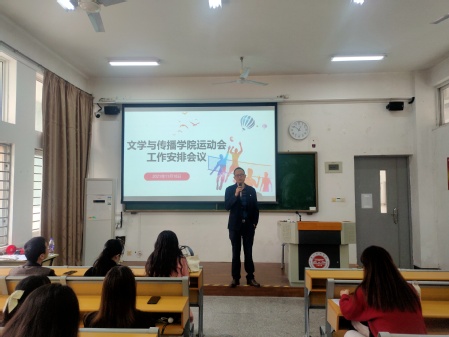 为迎接我校第39届田径运动会,协调好文传学院各部门在校运会期间的工作安排,文学与传播学院于11月18日中午在俊秀109教室召开校运会工作安排会议。本次会议由院团委书记、学工办主任陈燕红主持,院党委副书记纪委书记肖文清、各专业辅导员及部分学生干部参加。
