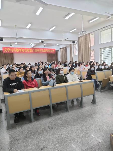 12月9日下午,文学与传播学院第二十七期入党积极分子培训班在俊秀东楼109举行开班仪式。本次培训班开班仪式由培训班班主任黄腾蛟老师主持,院党委书记李丽雪出席并致辞,各学生党支部书记和第二十七期入党积极分子93人参加。