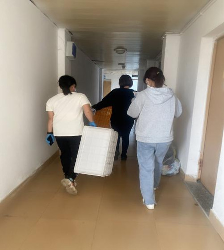 突如其来的疫情让我们措手不及,疫情面前有人胆怯了,有人退缩了,而我们有这样一批老师,他们站出来,组建了“文传教师抗疫突击队”,并很快投入到了实际工作中。他们当中有党员,也有追求进步的积极分子,也有普通老师,疫情面前大家自觉地站在一起。他们奔波在食堂和宿舍楼间,为了在第一时间把热饭菜送给在宿舍封闭的学生。正如王勇卫院长说的“文传教师抗疫突击队绝大多数是女教师,虽然力量体能不是优势,却完全体现出那份最强烈的爱生情怀。”正是因为这份爱,他们从一楼到六楼,十几双手送出几千份饭。他们从昔日拿笔的“儒将”化身成了扛重物的“武将”。汗水湿了他们的衣服,他们却毫无怨言,满怀热情。