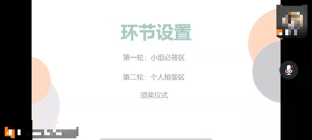 本次竞赛的参赛选手共分为4组,每组5人。比赛由小组必答和个人抢答两个环节组成。小组必答环节中,各选手按组序与号数依次回答两题。各组表现大同小异,大多数选手能答对两题中的一题。小部分选手表现抢眼,两题皆对,为之后的竞赛打下良好的基础。在个人抢答环节中,各路参赛选手颇有群雄逐鹿之势,竭智云集而上。主持人方念完题目,讨论区便涌出十数条回答,讨论十分热烈。最终,林金明同学以50分的总分数傲视群雄,夺得第一。