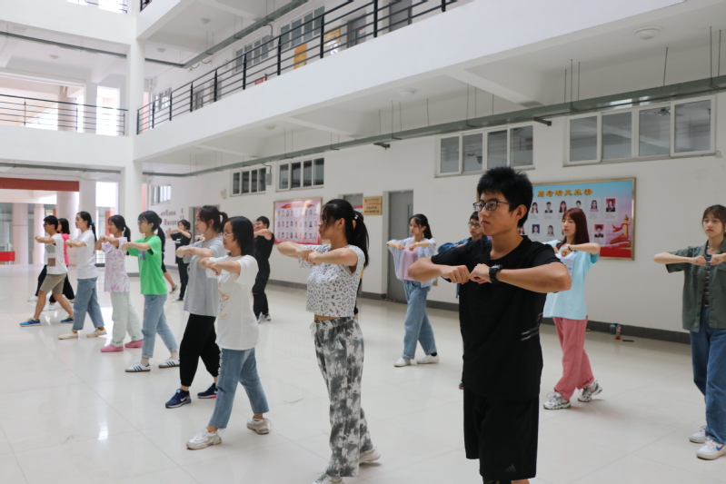 排舞训练不仅有益于提高同学们的身体素质与才艺能力,更是我校运动会不可或缺的活动。秉持着这种排练精神,小教练们尽心尽力地指导,一次又一次地为同学们调整错误姿势,向同学们提出了几点要求。第一,姿态平,动作协调流畅。第二,动作稳,排练时不歪不倒。第三,队一同,队列做到整齐划一。同时,2020级新生们也态度端正积极配合学姐学长们,不够协调、不够熟练的动作在反复训练中变得整齐流畅,跳跃的脚步和着灵动的音乐。排舞训练虽然辛苦,但不时传来的欢声笑语也为其抹上了一笔浓厚的团队精神色彩。