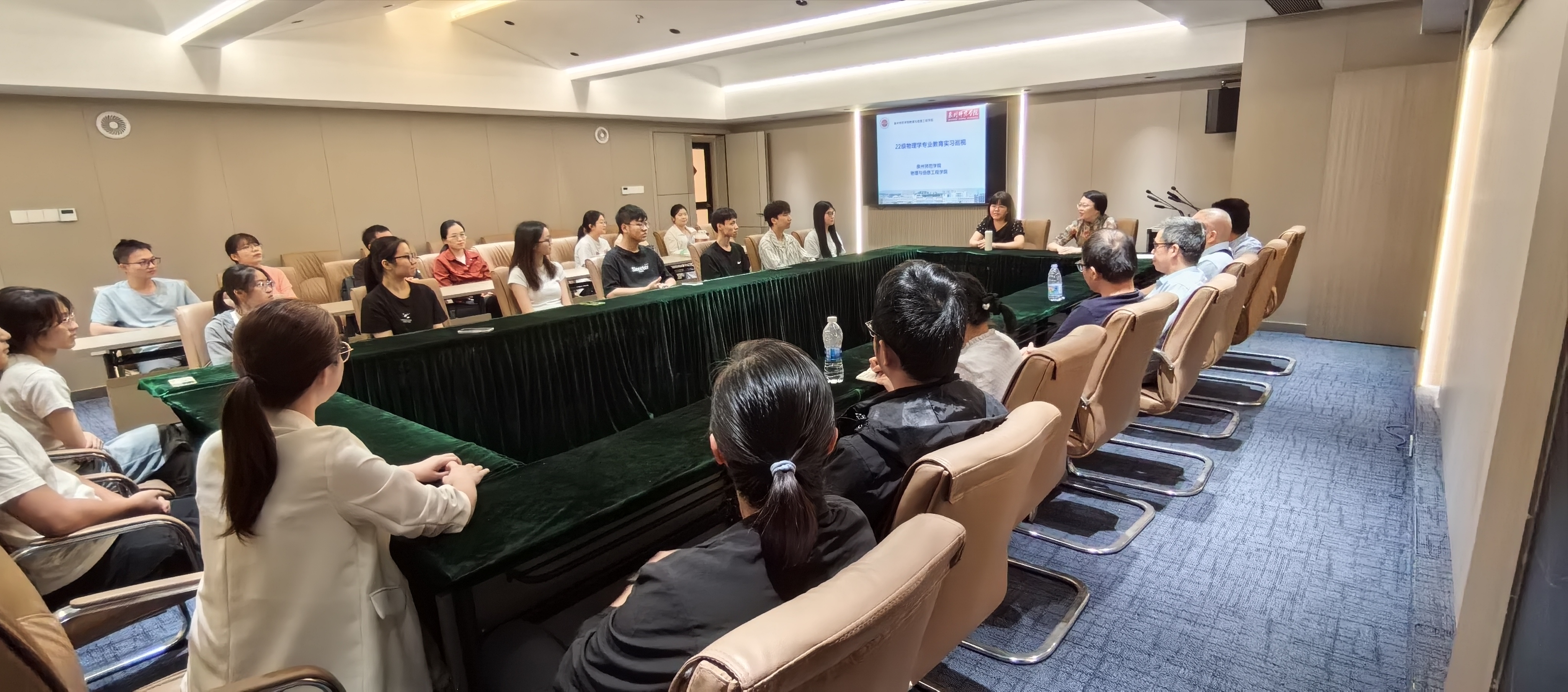 学院领导与实习生进行了座谈交流。实习带队老师汇报了近一个月的实习工作开展情况,实习生们踊跃发言,分享了实习期间的收获与感悟,纷纷表示教学实践能力得到有效提升。学院领导老师对同学们的表现给予充分肯定,并鼓励大家继续保持积极进取的精神状态。交流中,院领导还亲切询问同学们的生活与工作情况,现场协调解决实际困难。