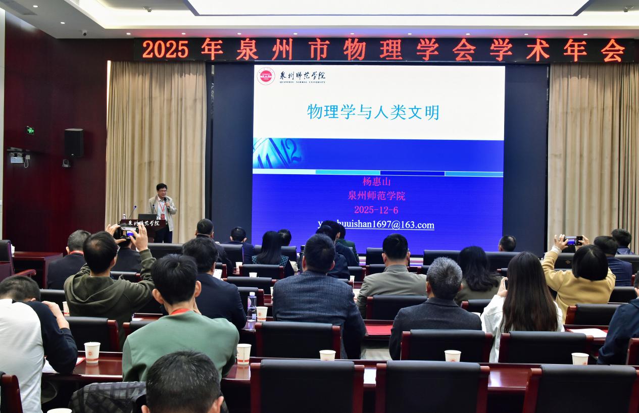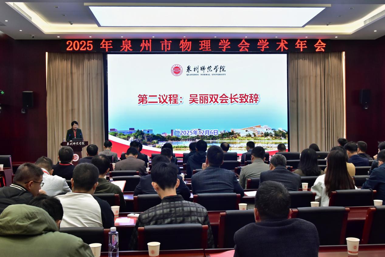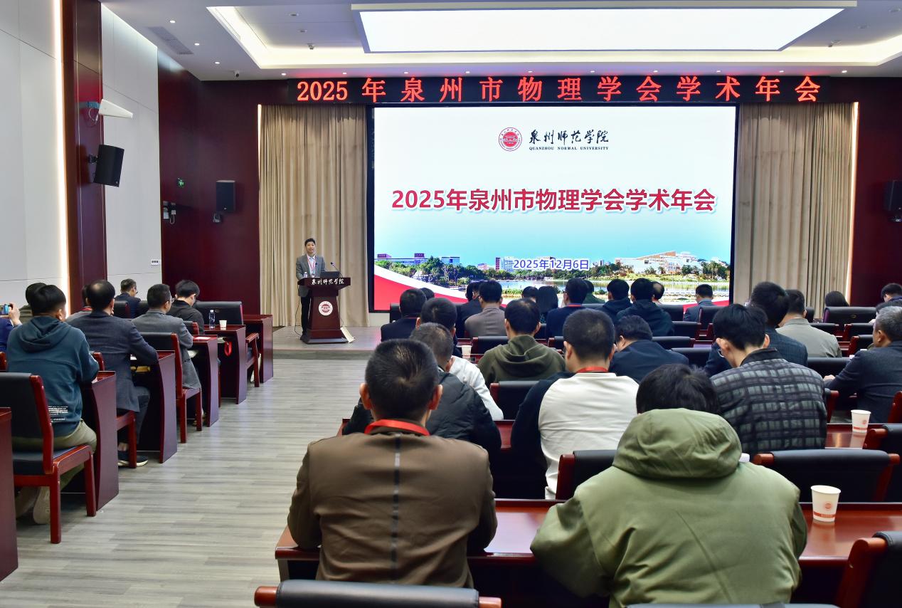 12月6日上午,泉州市物理学会学术年会在泉州师范学院中山纪念堂第一会议室举行。本次年会由泉州市物理学会与泉州师范学院联合主办,泉州师范学院物理与信息工程学院承办,吸引了来自全市中学、高校及教育科研机构的百余名物理教师、教研员和专家学者参与。