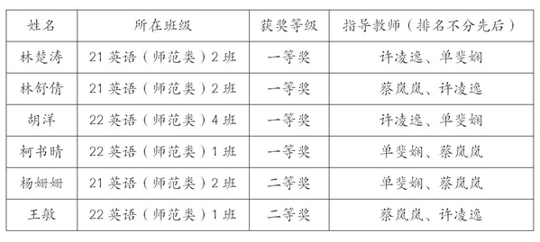 学校历来重视师范生技能的培养,备赛期间学校严密组织、有序推进,从今年春季开始组建参赛师生团队,蔡岚岚、单斐娴、许凌逸等3位英语专业教师对参赛学生给予全面细致的指导。此次比赛体现了我校英语师范生教育的优秀教学成果,彰显出师范教育的实力与特色,进一步锻炼提升学生英语教学设计和实施能力。