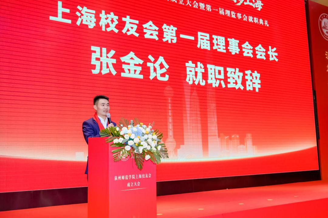 新当选会长张金论在就职发言中代表上海校友会第一届理事会表示,将始终坚持“服务校友、服务母校、服务社会”的创会定位,围绕“创、传、帮、带”,努力把上海校友会建设成为在沪校友可依托、可信赖、可持续发展的共同体,成为投身上海高质量发展的有生力量。