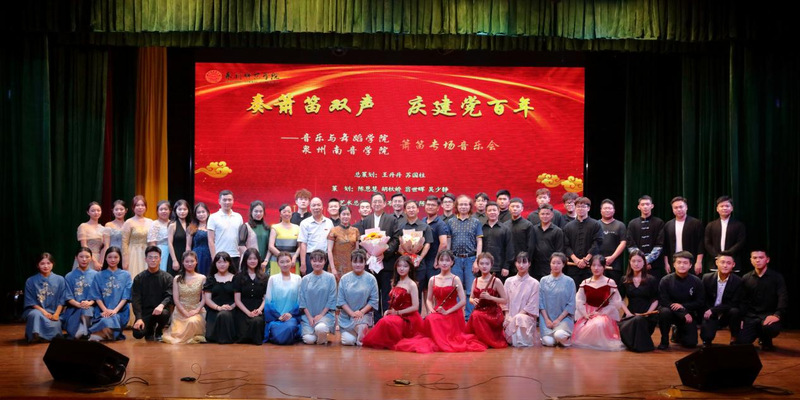 为庆祝中国共产党建党100周年,音乐与舞蹈学院于5月27日晚,举办了“奏箫笛双声 庆建党百年——箫笛专场音乐会”。学院领导、教研室主任,以及福建省笛箫协会、泉州社会各界的笛箫专家和表演艺术家出席了本场音乐会。