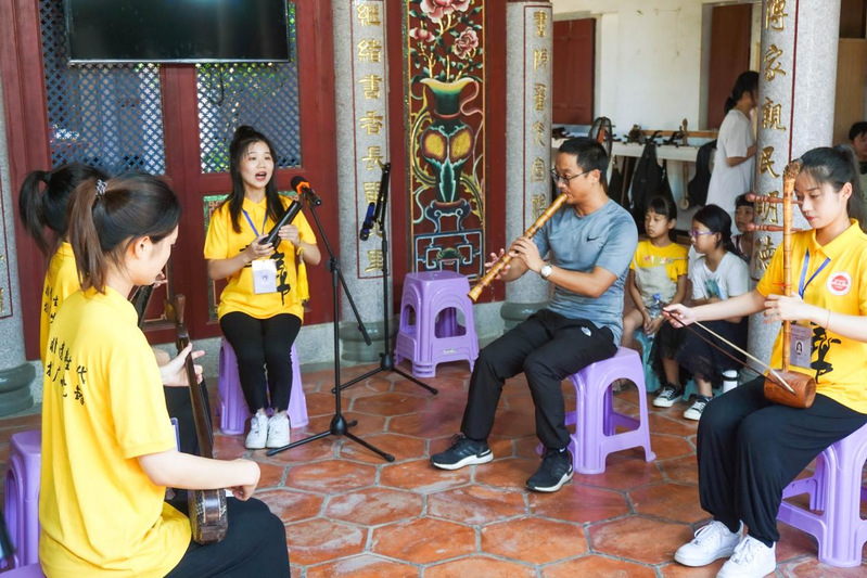 来自暑期社会实践队的南音系师生与龙山书院青少年南音社团的小朋友们共同展示了《梅花操》、《鱼沉雁杳》等南音经典曲目,得到了现场听众的一致好评。