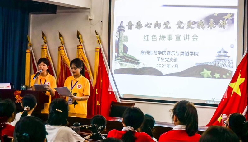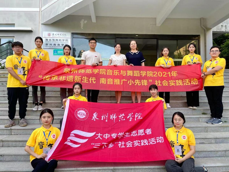 为引领学生在社会实践中受教育、长才干、作贡献,以实际行动投身乡村振兴战略实施,勇做担当民族复兴大任的时代新人,7月13日—7月18日,音乐与舞蹈学院“传承非遗新生代·南音推广小先锋”暑期社会实践队一行12人赴惠安县净峰镇西头村开展为期一周的社会实践活动,本次社会活动包含了南音公益课堂、南音社拜馆、南音公益快闪、环保宣传、校园安全宣传、党史宣传教育、汇报演出等丰富多彩的实践内容。