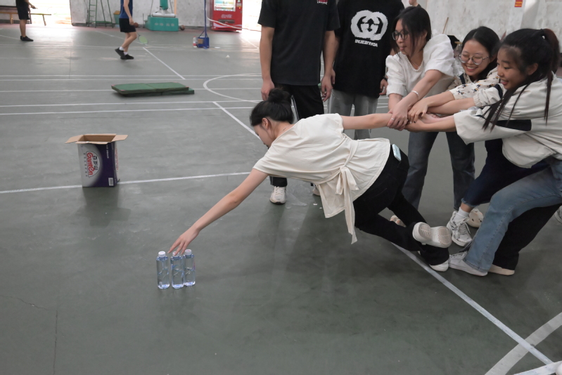 “群龙取水”游戏成了全场焦点,参与者们必须齐心协作,避免违规,以尽快完成任务。这一环节不仅考验了同学们的团队精神,也让大家暂时放下了学习的压力,充分享受团队游戏所带来的愉悦和成就感。