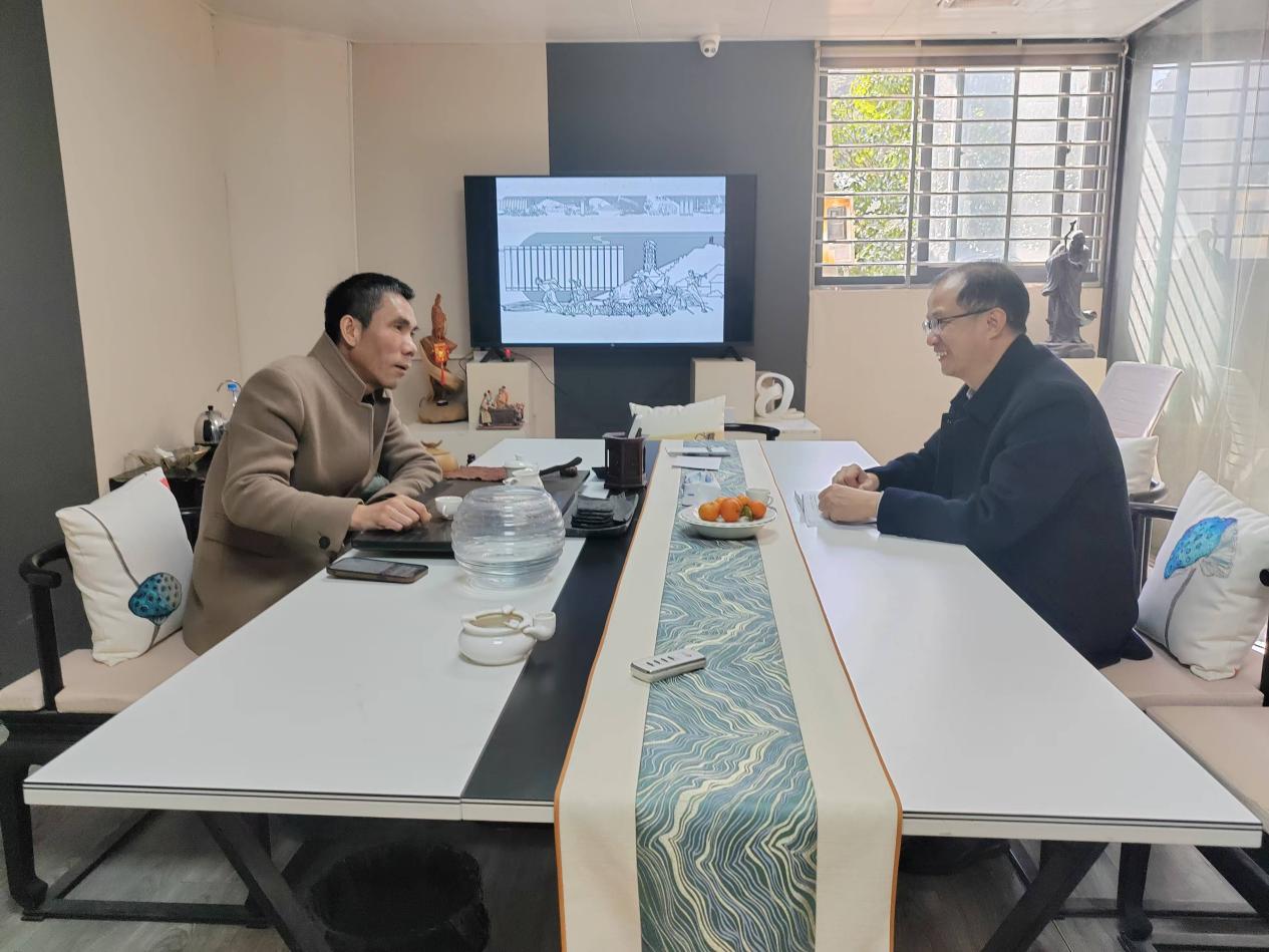 同时,走访团还受到了恒雕艺术中心主任陈信心校友的热情接待。陈信心校友向走访团展示了其艺术设计及研发的最新成果,双方就如何将这些成果转化为教学资源、推动产学研深度融合进行了深入探讨。