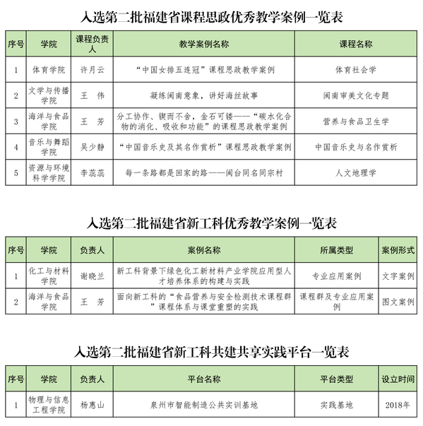 至此,我校已入选福建省课程思政优秀教学案例8个,福建省新工科教育优秀教学案例4个,福建省高校新工科共建共享实践平台2个。